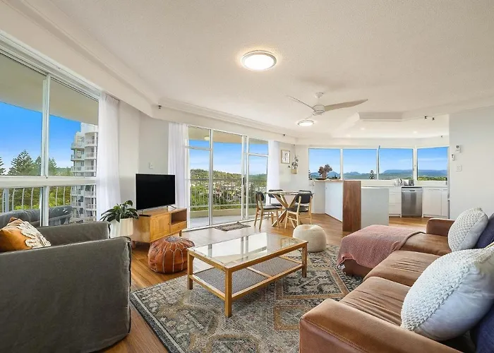 Burleigh Vista Apartment - Views ferielejlighed ligger i Miami område i Gold Coast, 15 km fra Gold Coast lufthavn. Denne ferielejlighed med udsigt over havet indeholder 2 værelser, 2 badeværelser og et udstyret køkken.